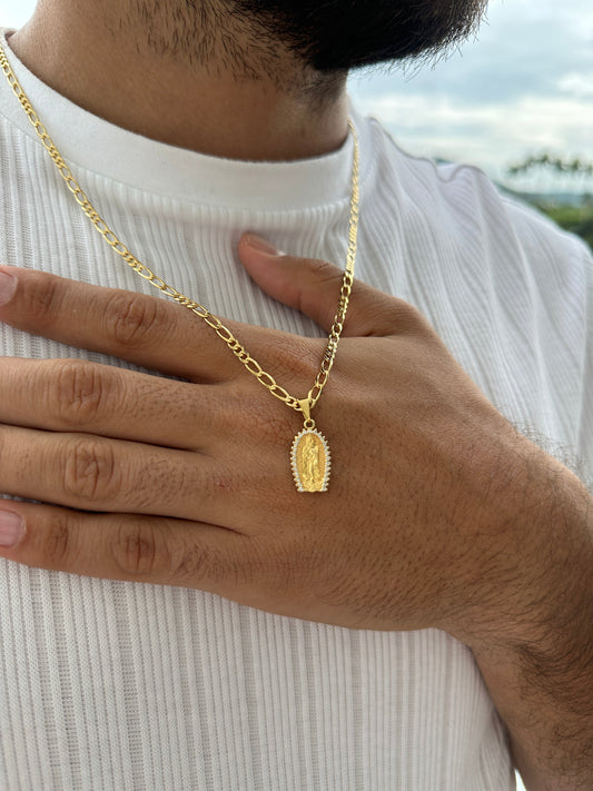 Cadena 3x3 3mm 60cm + Colgante Virgen Piedras