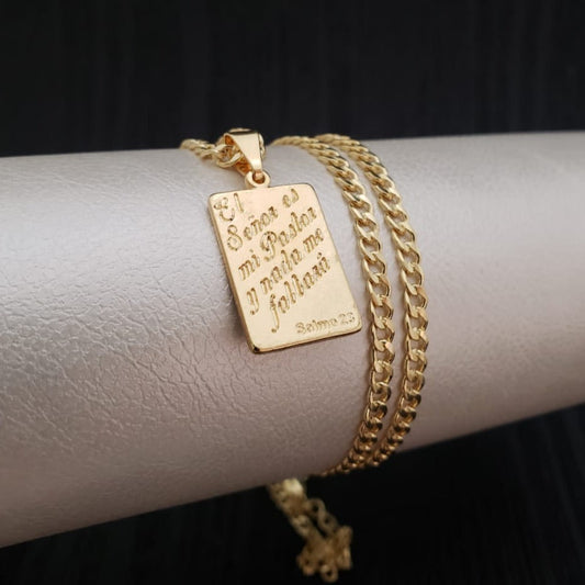 Cadena Cubana Plana en H 65 cms + Colgante Cruz