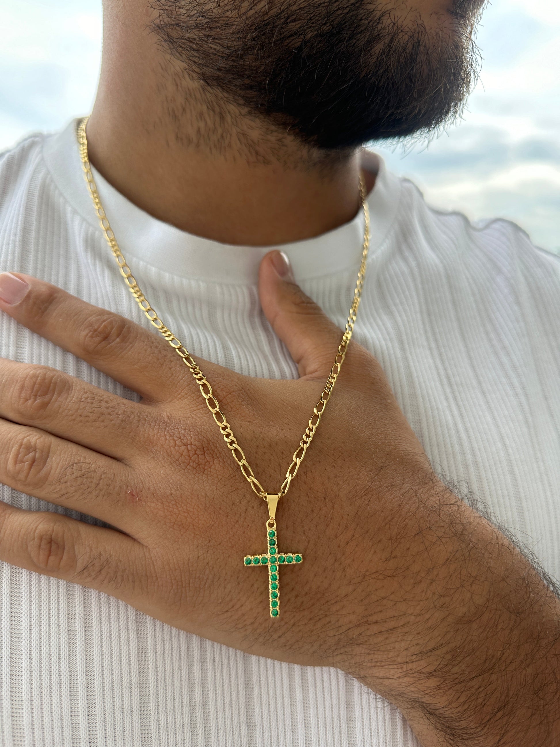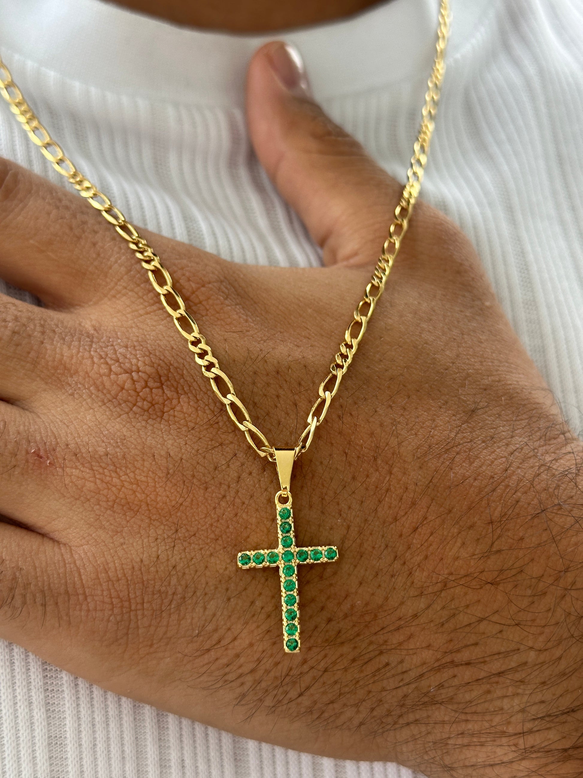 Cadena 3x3 3mm 60cm + Colgante Cruz Piedras