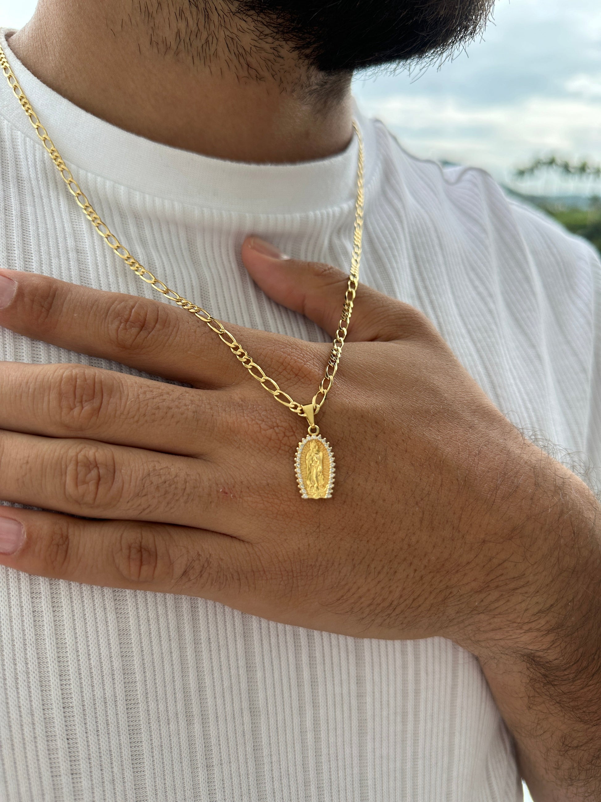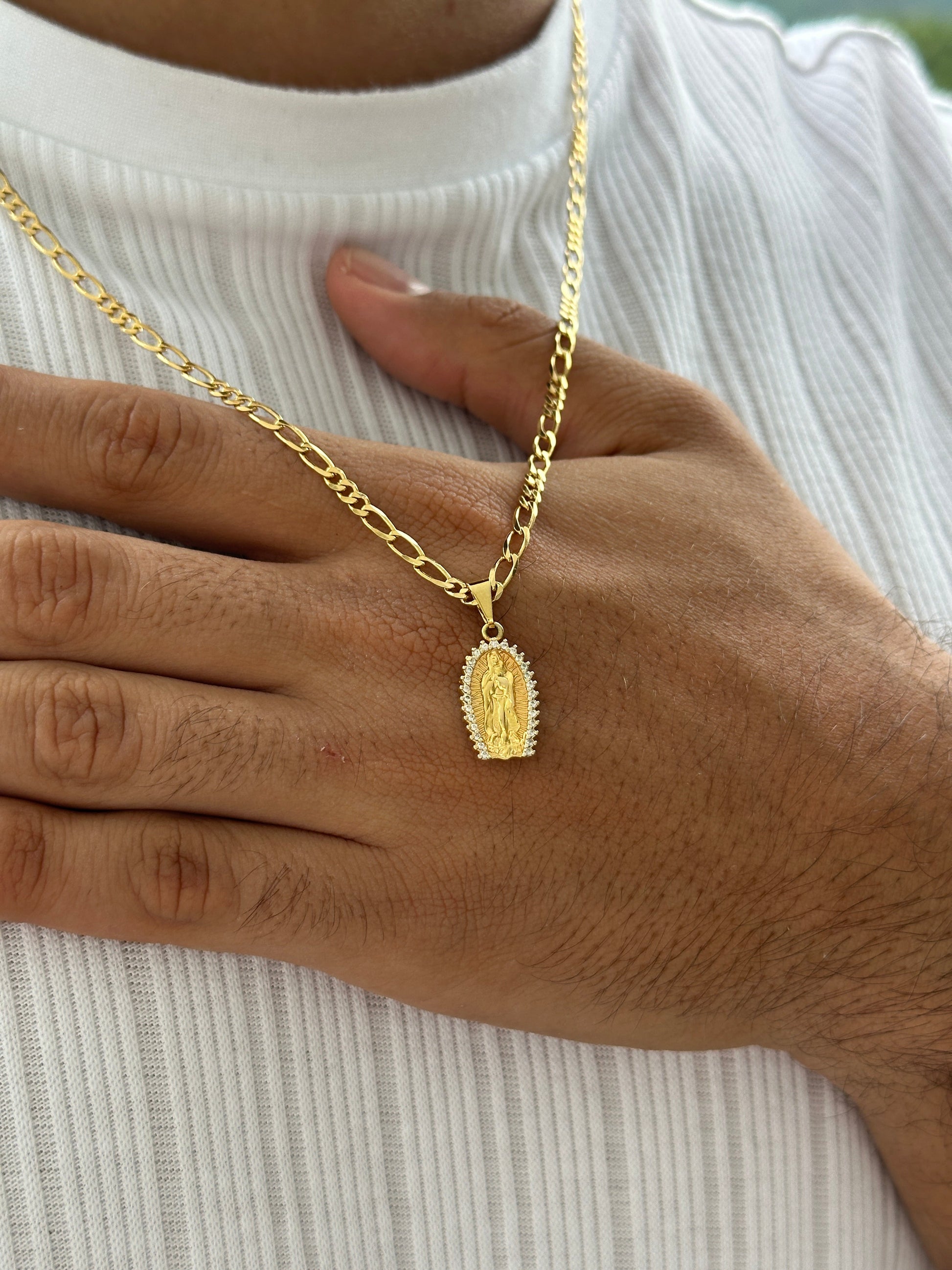 Cadena 3x3 3mm 60cm + Colgante Virgen Piedras