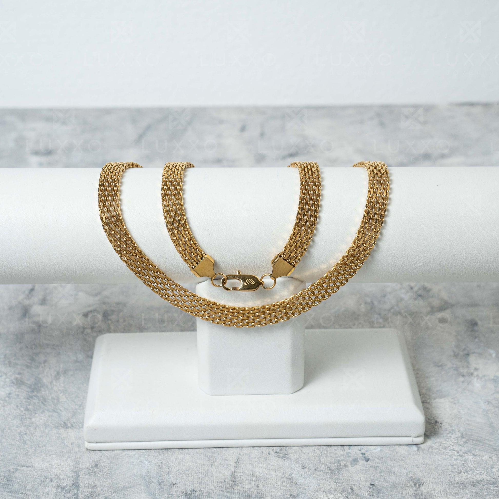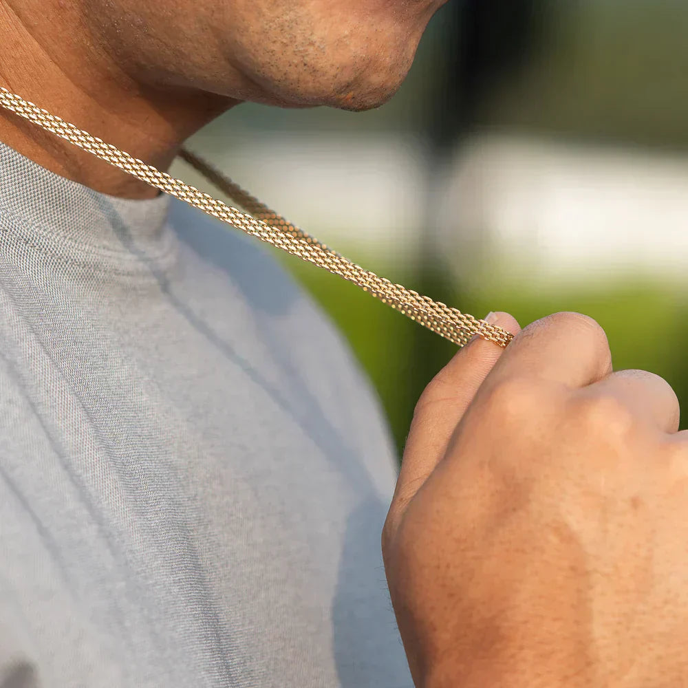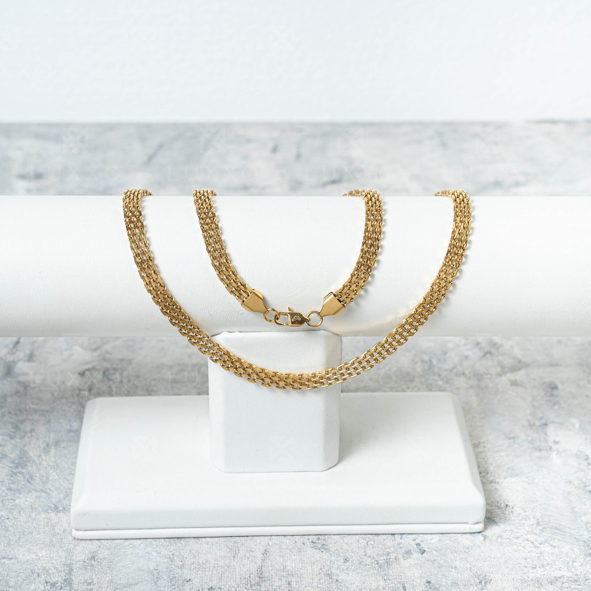 Cadena de Oro Laminado Italiano 18K con diseño clasico y acabado brillante. Perfecta para usar sola o con otros accesorios, combina elegancia y durabilidad. Una pieza resistente que mantiene su belleza a lo largo del tiempo, ideal para realzar cualquier look. Todas nuestras joyas son contramarcadas en sus broches (por un lado el doble lingote que nos identifica y por le otro el 18K).