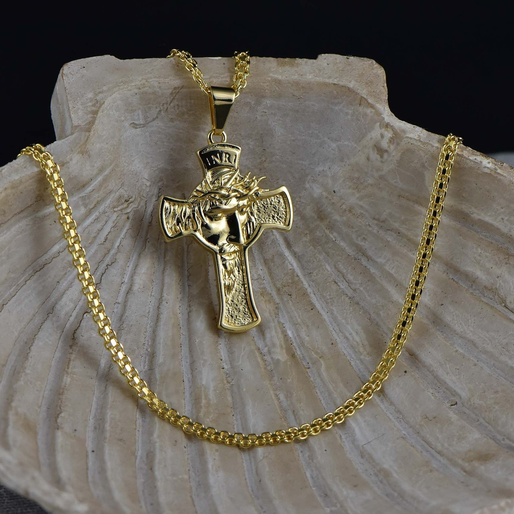 Cadena Chinesca 45cm + Colgante Cruz Sagrado Rostro