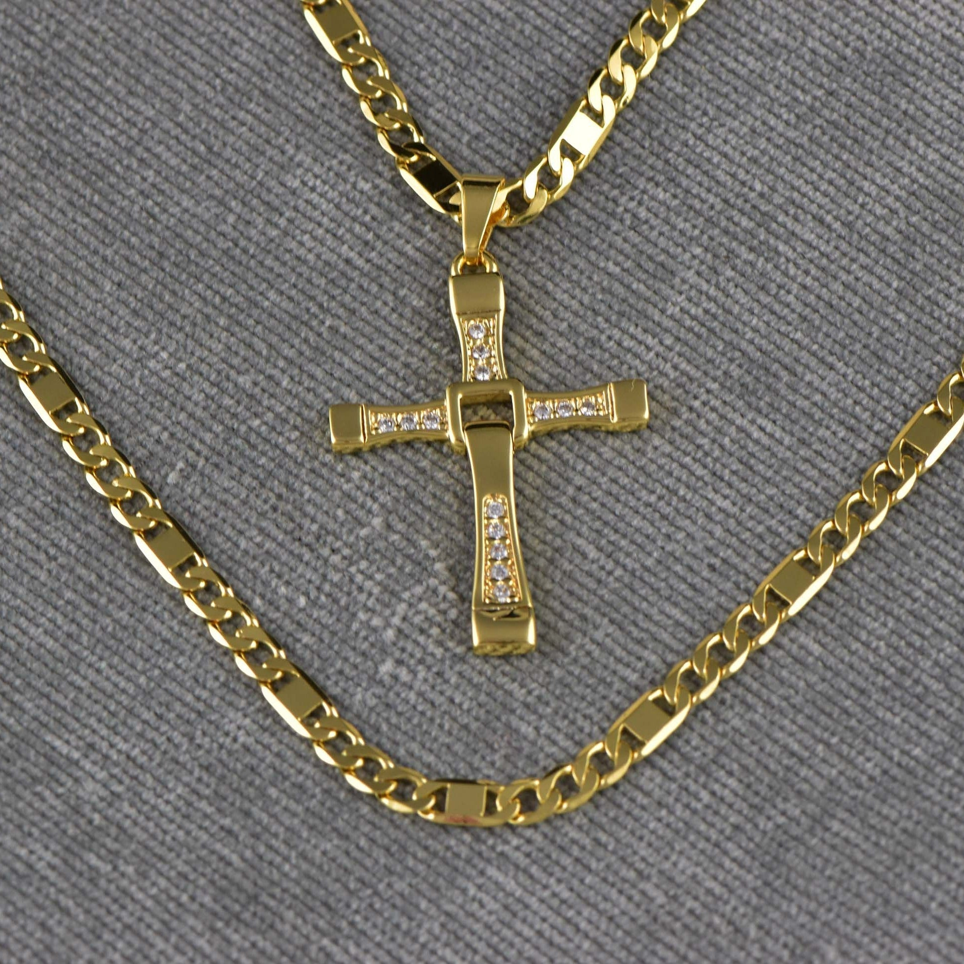 Cadena Escalera y cubana 65cm + Colgante Cruz Toretto