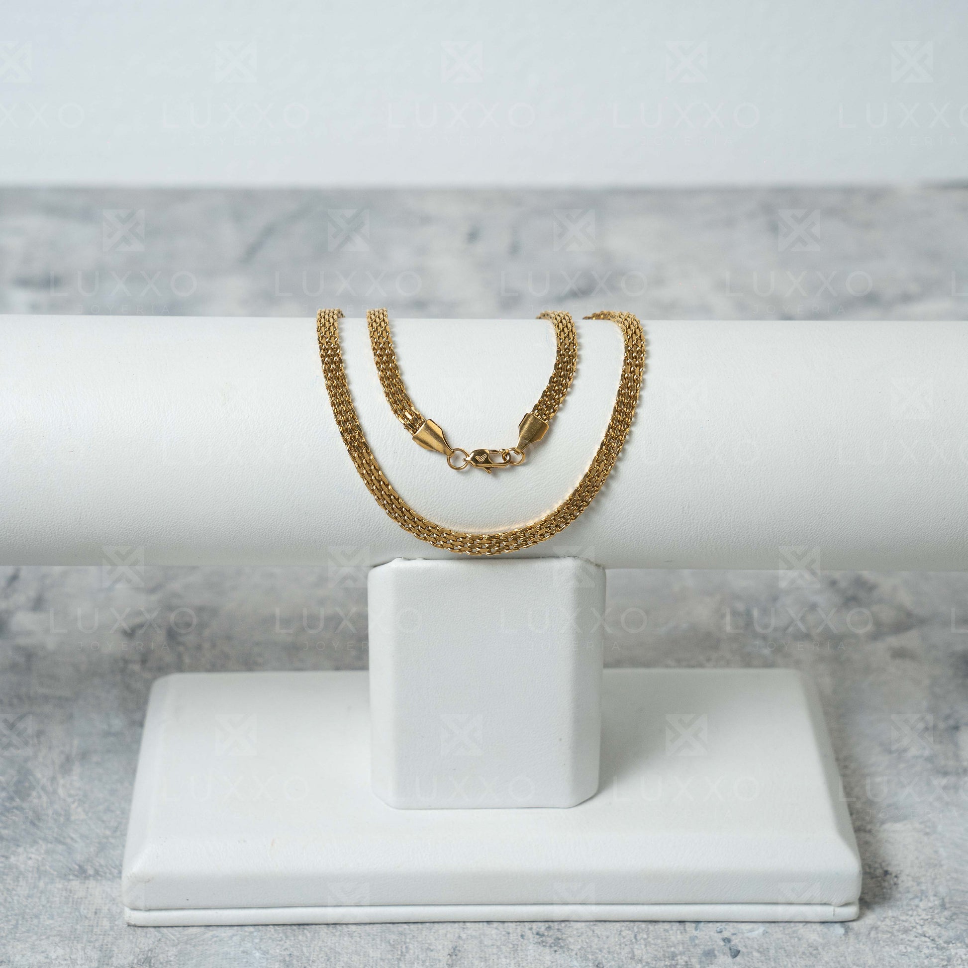 Cadena de Oro Laminado Italiano 18K con diseño clásico y acabado brillante. Perfecta para usar sola o con otros accesorios, combina elegancia y durabilidad. Una pieza resistente que mantiene su belleza a lo largo del tiempo, ideal para realzar cualquier look. Todas nuestras joyas son contramarcadas en sus broches (por un lado el doble lingote que nos identifica y por le otro el 18K).
