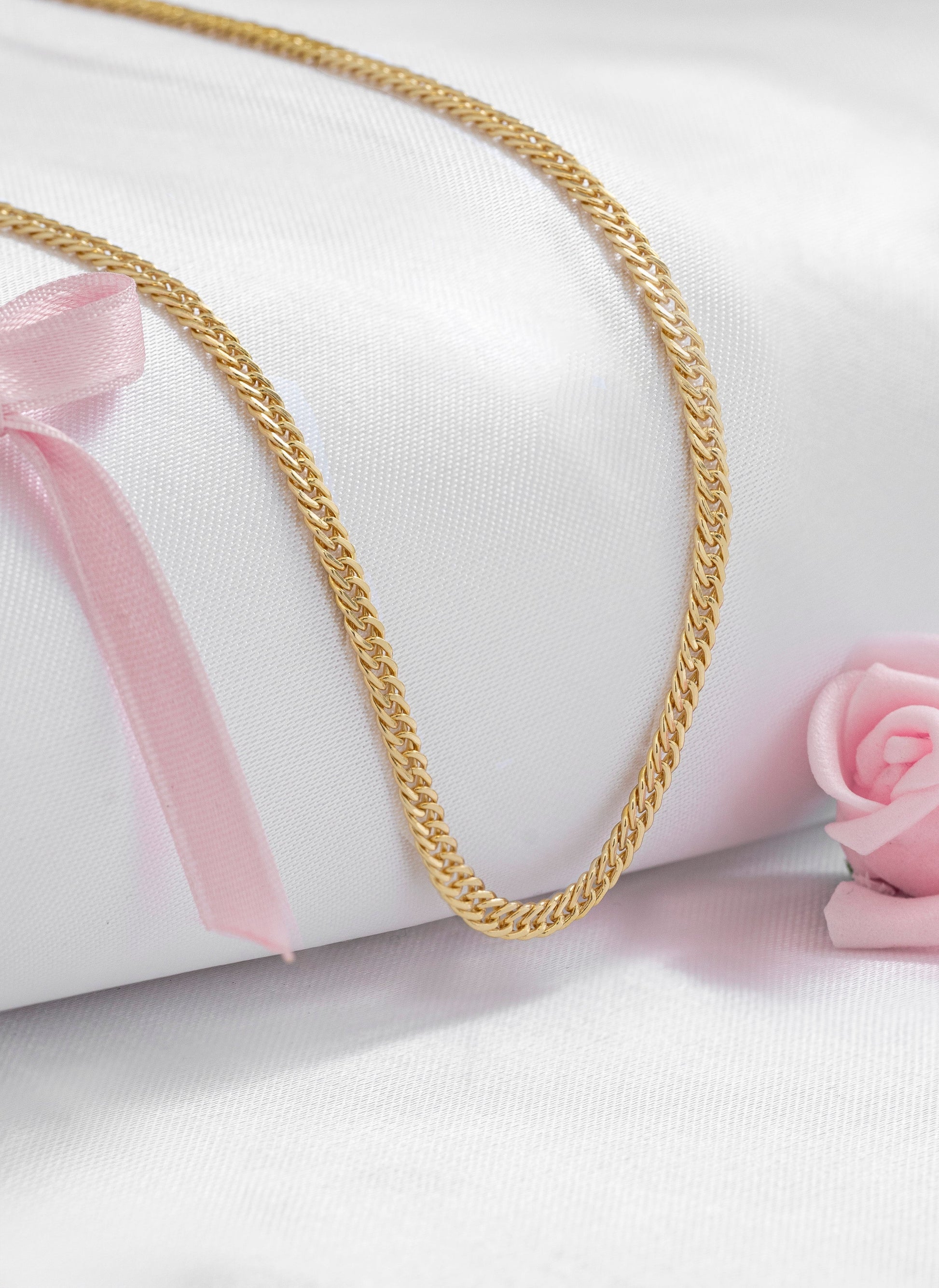 Cadena de Oro Laminado Italiano 18K con diseño clásico y acabado brillante. Perfecta para usar sola o con otros accesorios, combina elegancia y durabilidad. Una pieza resistente que mantiene su belleza a lo largo del tiempo, ideal para realzar cualquier look. Todas nuestras joyas son contramarcadas en sus broches (por un lado el doble lingote que nos identifica y por le otro el 18K).