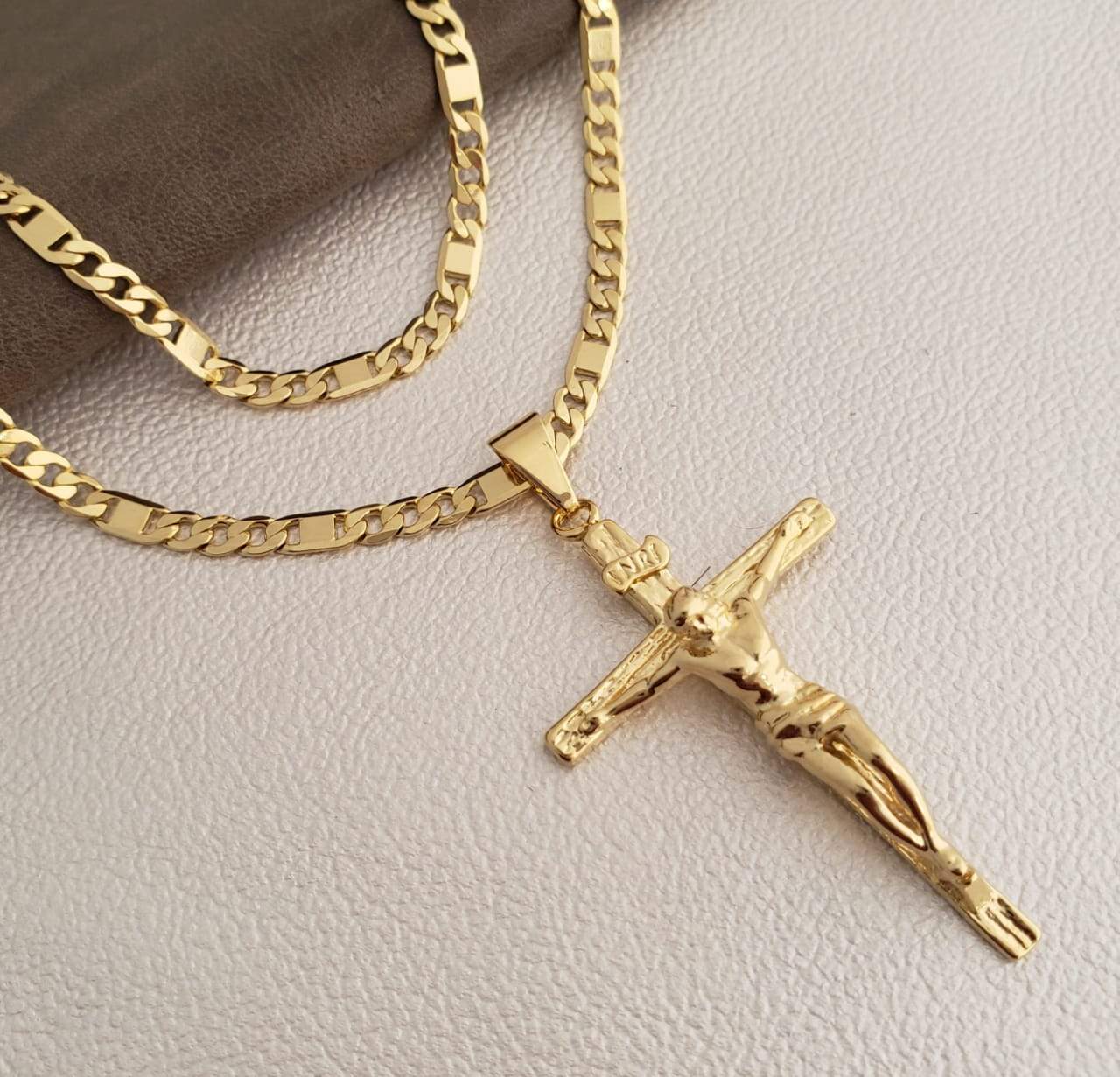 Cadena Escalera y Cubana 65cm +Dije Cruz