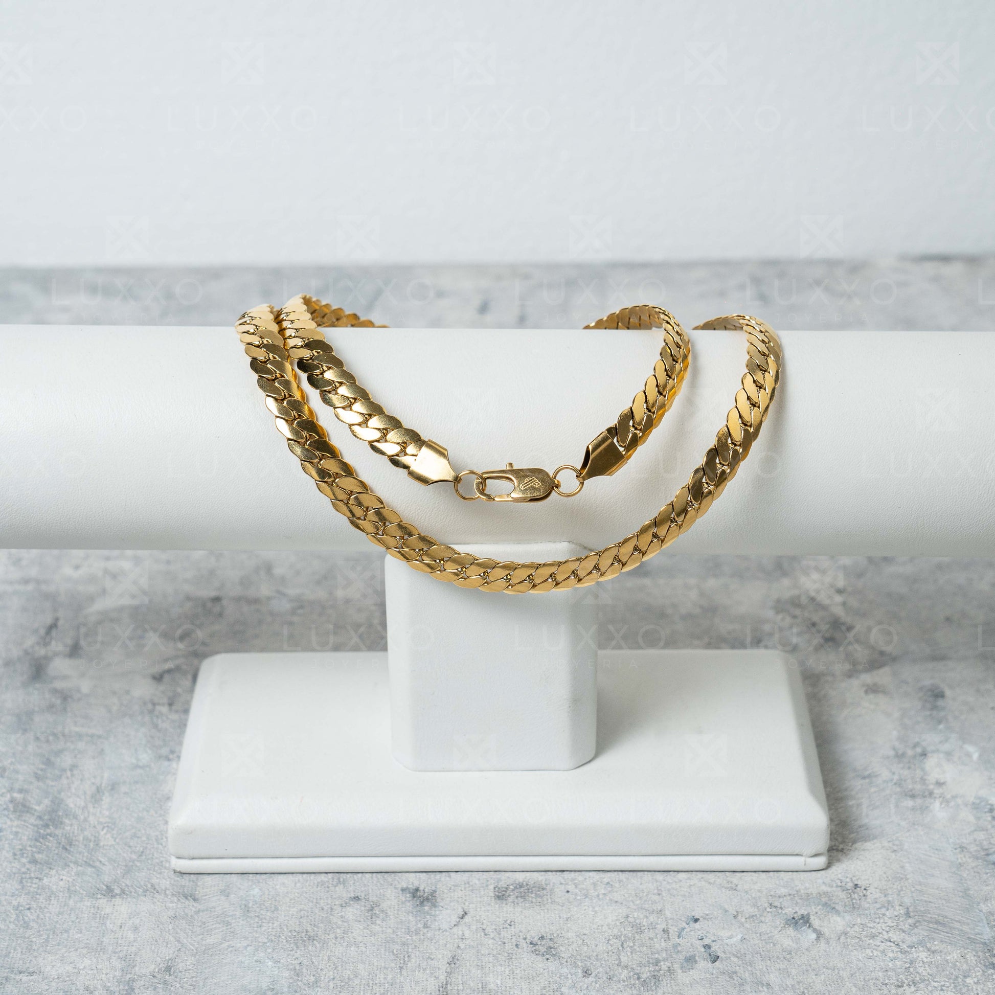Cadena de Oro Laminado Italiano 18K con diseño clásico y acabado brillante. Perfecta para usar sola o con otros accesorios, combina elegancia y durabilidad. Una pieza resistente que mantiene su belleza a lo largo del tiempo, ideal para realzar cualquier look. Todas nuestras joyas son contramarcadas en sus broches (por un lado el doble lingote que nos identifica y por le otro el 18K).