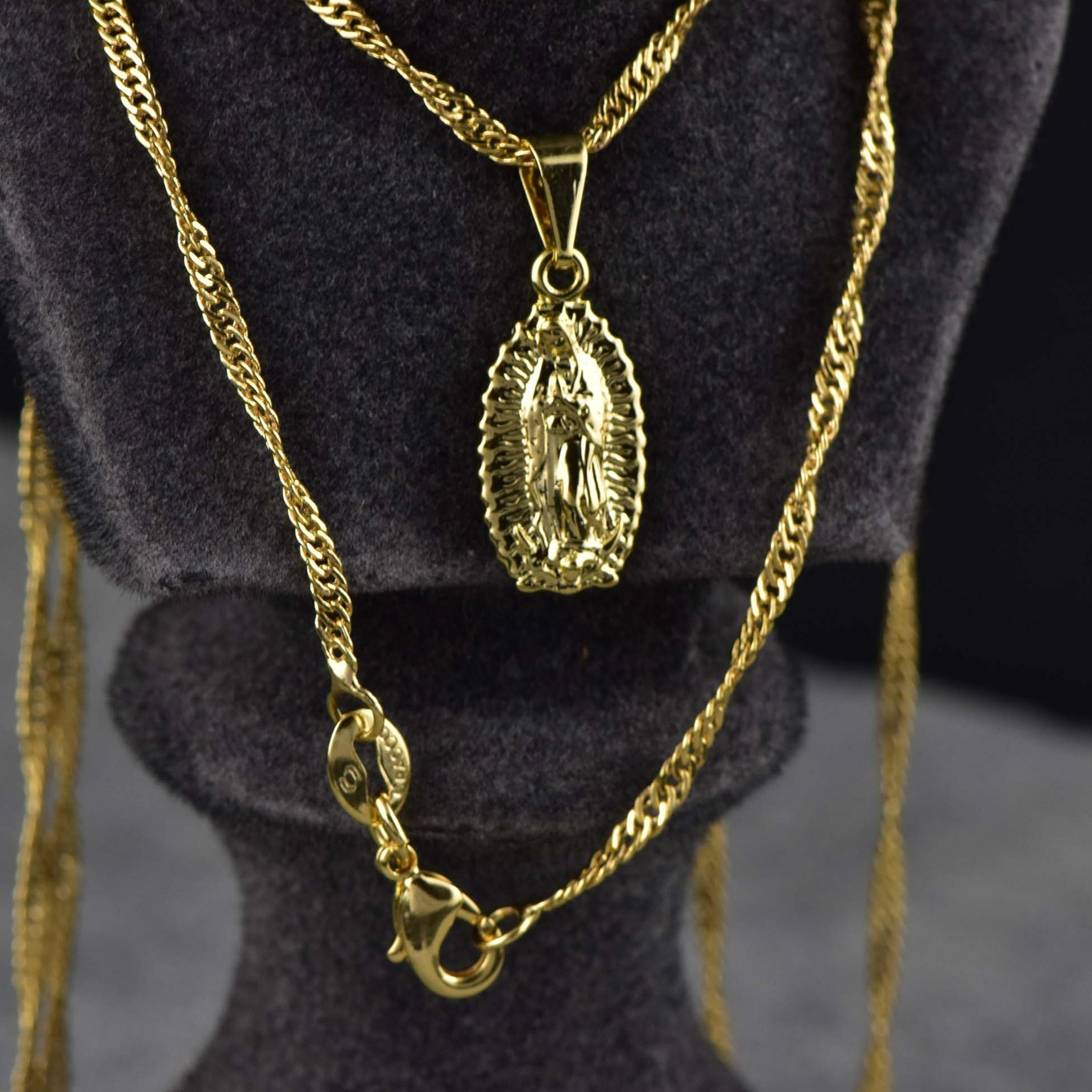Cadena Singapur 65cm + Colgante Virgen Guadalupe Tallada