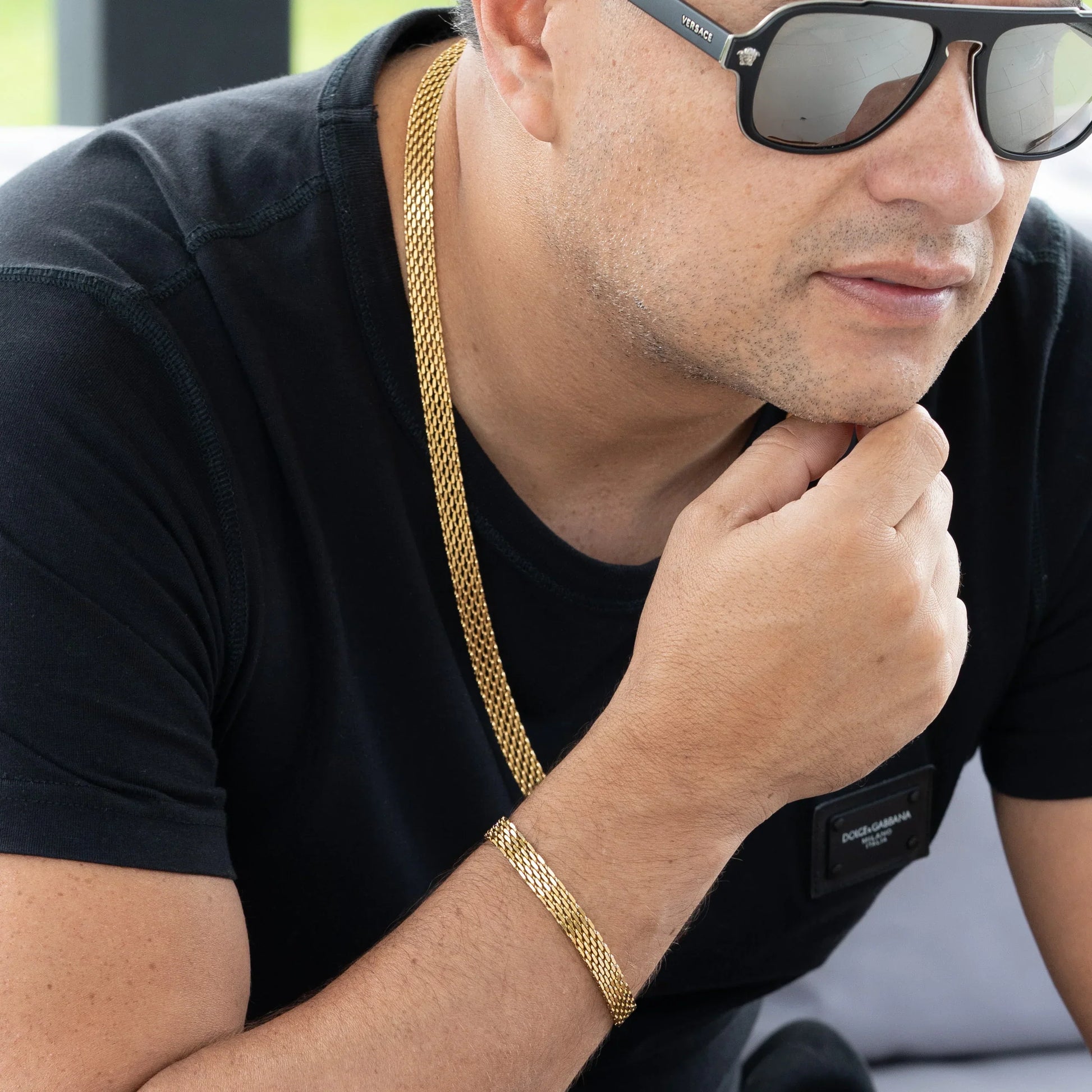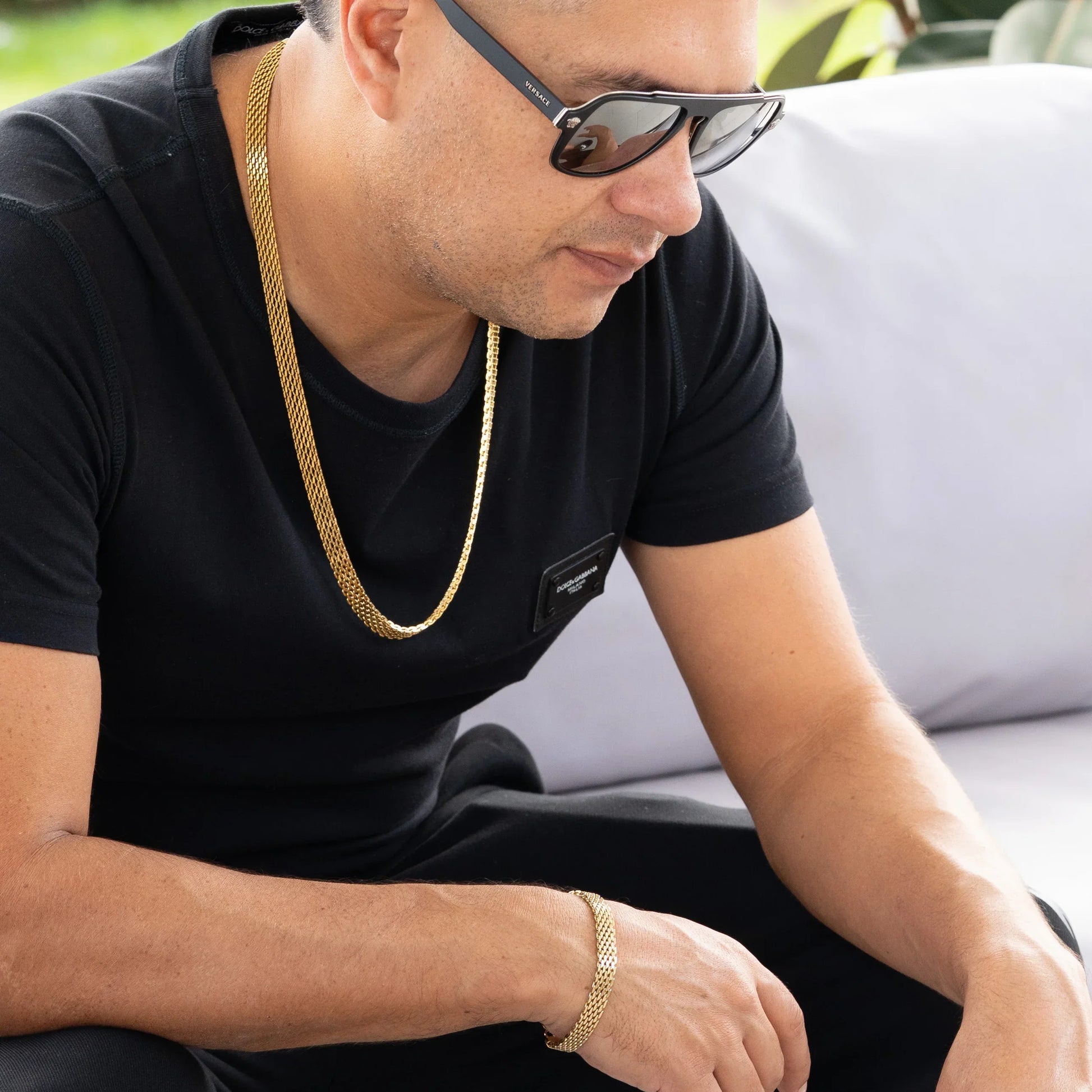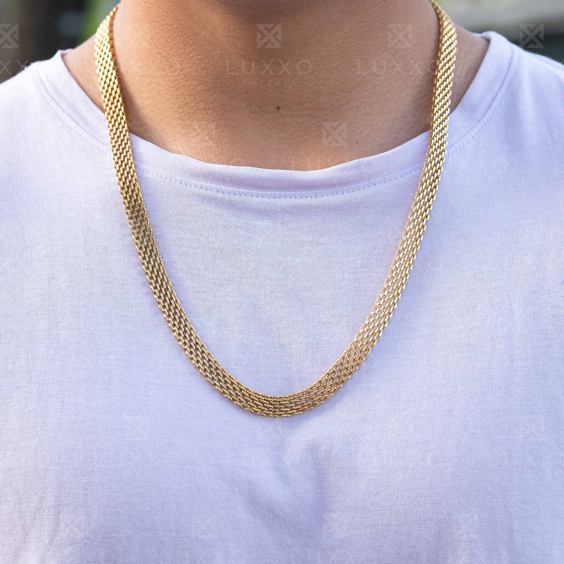 Combo de Cadena y Pulsera de Oro Laminado Italiano 18K con diseño clásico y acabado brillante. Combina elegancia y durabilidad. Una pieza resistente que mantiene su belleza a lo largo del tiempo, ideal para realzar cualquier look. Todas nuestras joyas son contramarcadas en sus broches (por un lado el doble lingote que nos identifica y por le otro el 18K).