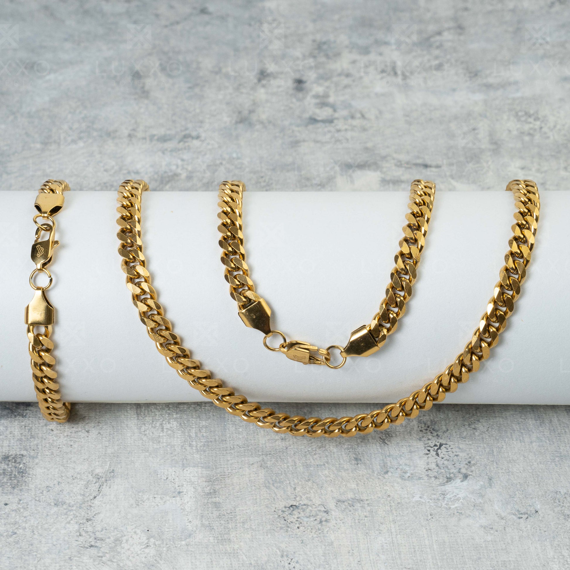 Combo de Cadena y Pulsera de Oro Laminado Italiano 18K con diseño clásico y acabado brillante. Combina elegancia y durabilidad. Una pieza resistente que mantiene su belleza a lo largo del tiempo, ideal para realzar cualquier look. Todas nuestras joyas son contramarcadas en sus broches (por un lado el doble lingote que nos identifica y por le otro el 18K).