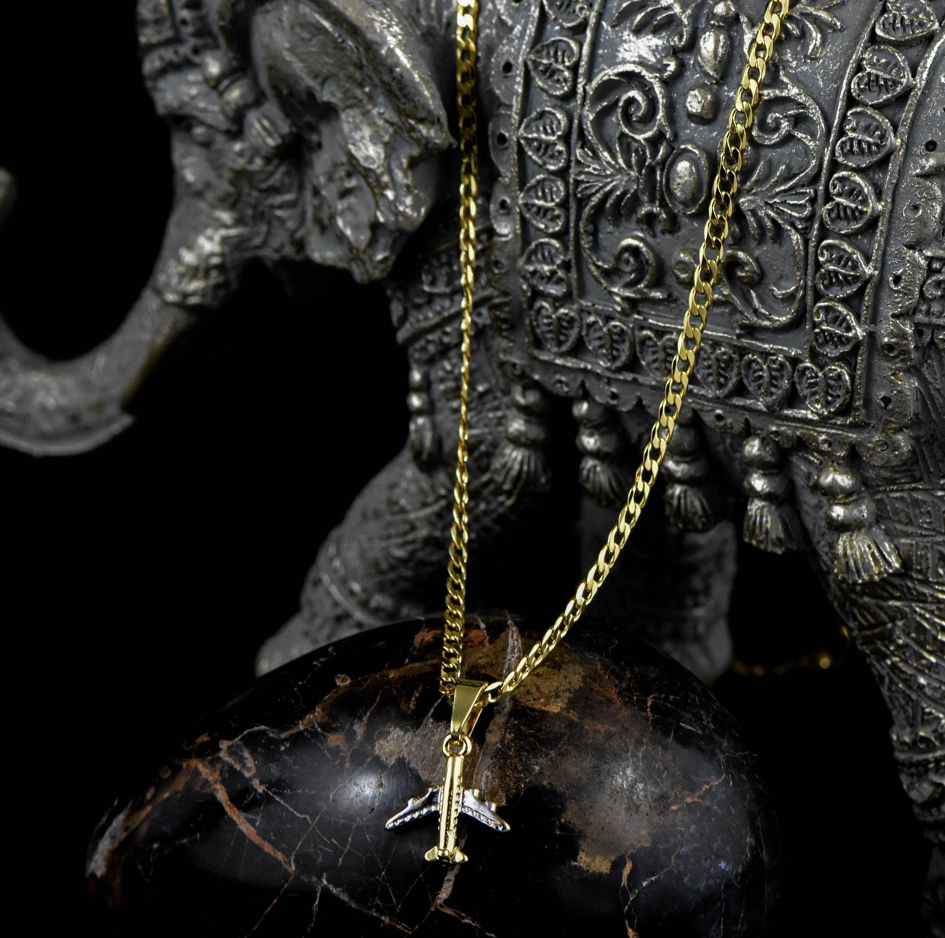 Cadena Cubana Diamantada 45cms + Colgante Avion