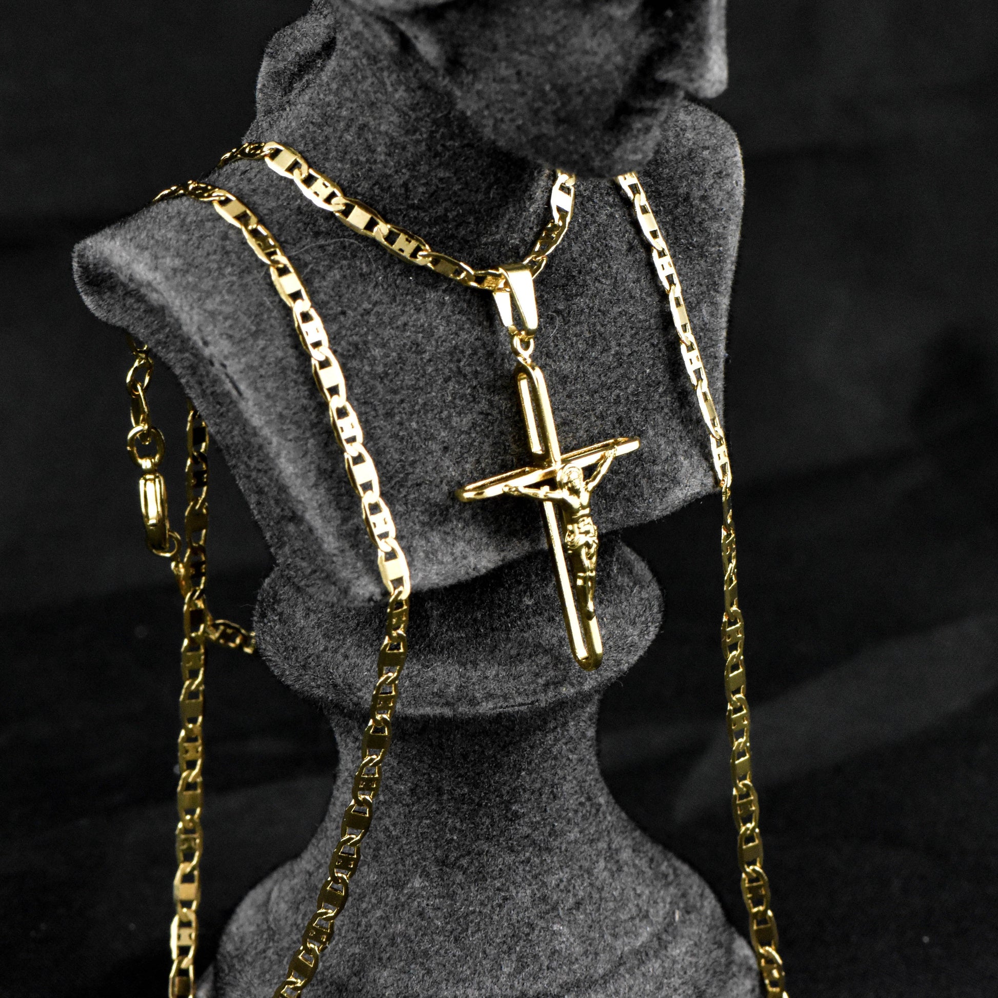 Cadena Cubana Plana en H 65cms+ Colgante Cruz Hueca