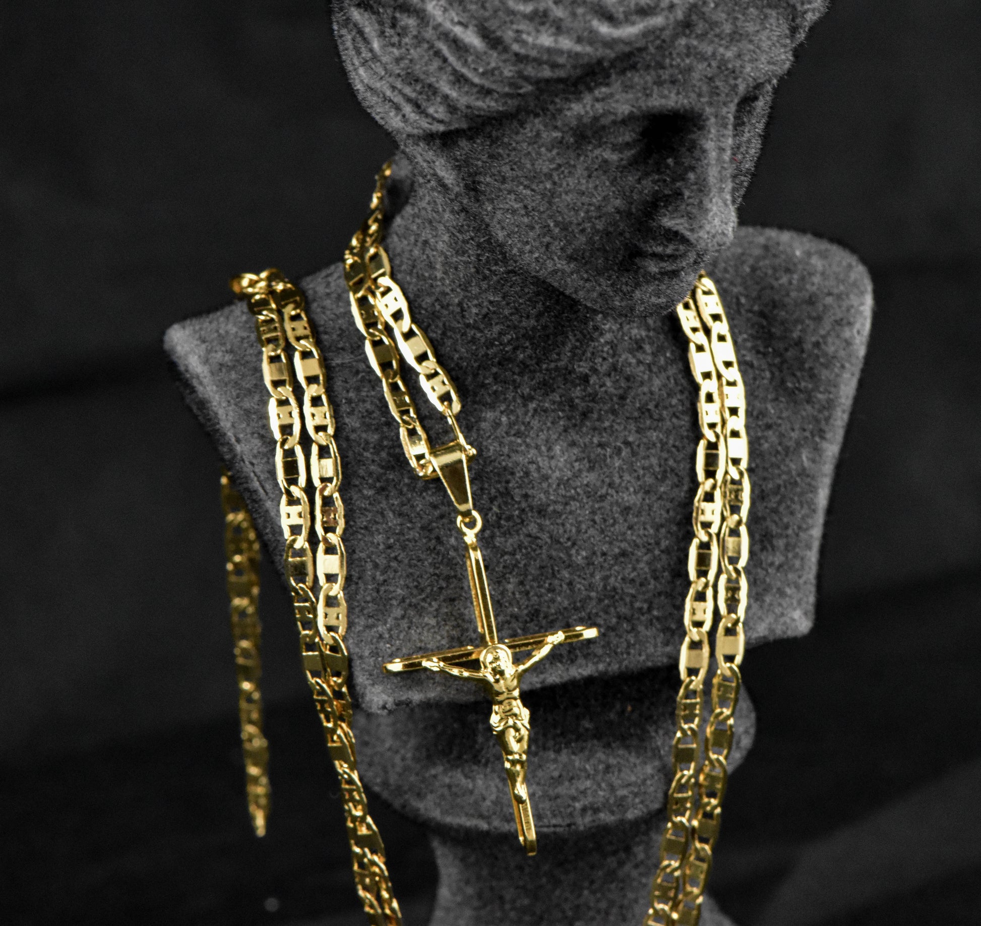Cadena Cubana Plana en H 65 cms + Colgante Cruz